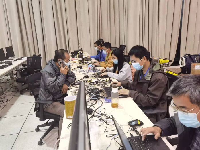在联试现场,项目团队克服水土不服,加班加点,积极与总体,相关联试厂家沟通交流学习。大家一边讨论协议规范,一边进行现场开发,一边还要进行接口联调,他们用自己坚韧认真、任劳任怨的工作态度,展现了“电科人”的风采。经过35天的积极奋战,终于顺利完成系统第一阶段的联试工作。